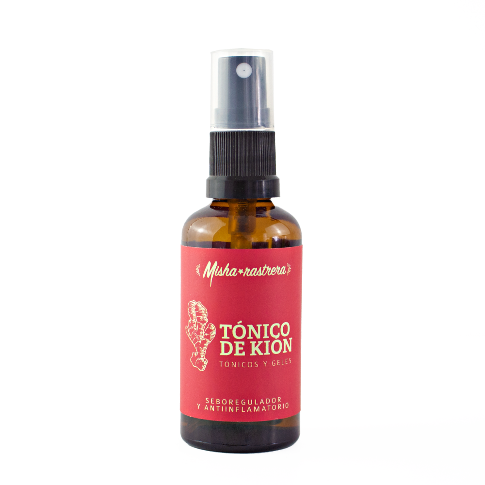 El Tónico de Kión está elaborado a base de hidrolato de kión o jengibre (Zingiber officinale) y glicerina líquida. Es de rápida absorción; ideal para pieles grasas; además, posee propiedades desinflamantes, antibacteriales y circulatorias. No solo ayuda a la piel, sino también al cabello fortaleciéndolo y ayudando a su crecimiento.